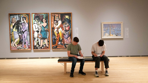 The students walk past busts, African masks, urns, and famous paintings. They quietly follow a curator, turning through a labyrinth of galleries and stop in front of a surreal painting in a corner of the Stanley Museum of Art.